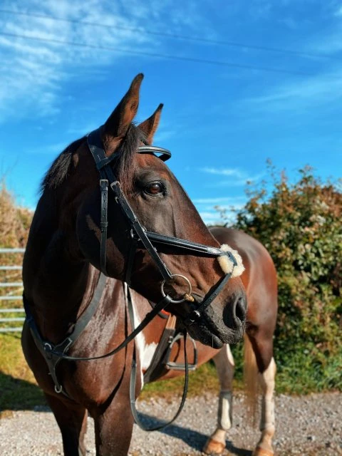 A stylish new grackle bridle developed with an anatomic headpiece with soft padding to help alleviate unwanted poll pressure. Raised and padded browband and noseband with sheepskin grackle noseband and sure grip reins. 5/8” cheeks