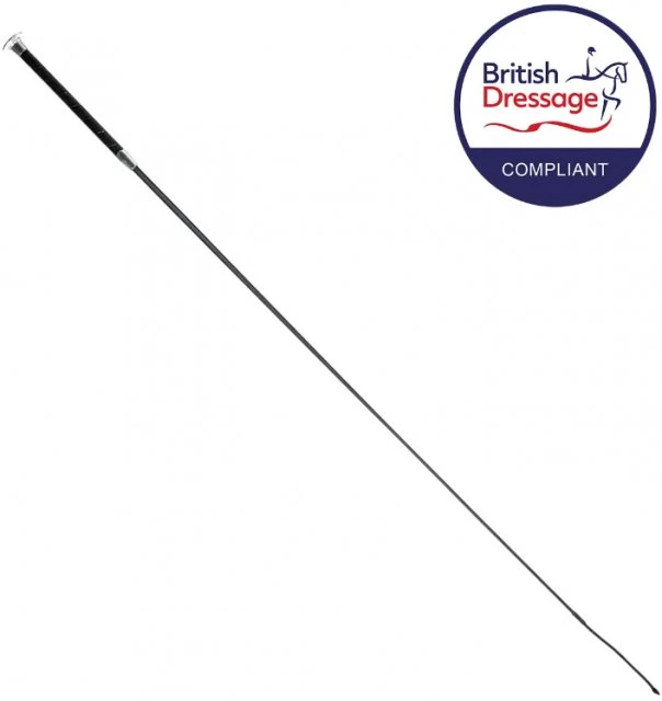 Simple, classic and sleek dressage whip suitable for competitions and everyday riding. This whip features a luxurious, soft spiral leather handle, with silver mushroom cap and silver collar detail, and finished with a smart black lash. Available in two colours.