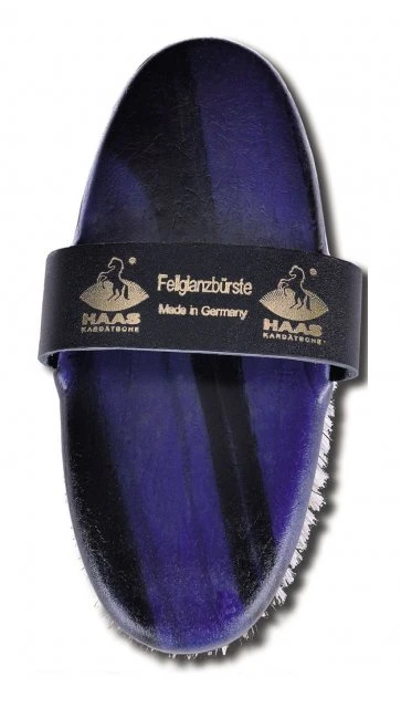 A brush with soft white horse hair for extra shiny results with a leather hand strap.