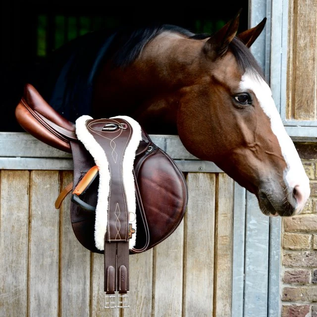 The Kentucky Sheepskin Anatomic Girth is crafted from artificial leather, making it 100% animal-friendly and easy to maintain. It features an EVA protective inner and an artificial sheepskin lining which provides excellent cushioning against the skin and ensures high levels of comfort for your horse throughout wear.