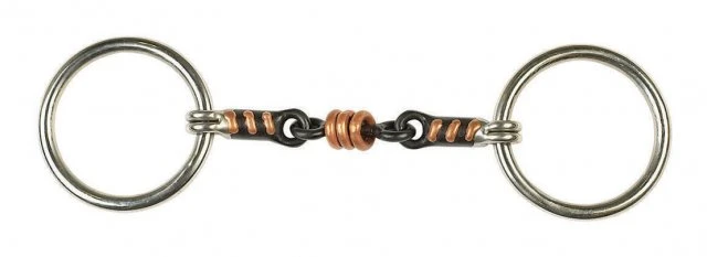 The combination of sweet iron and copper makes the bit very palatable and almost all horses will salivate and soften in response to the taste. The loose ring copper players in the centre give the horse something to think about, and often help to soothe a fussy tongued horse.