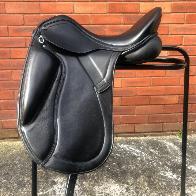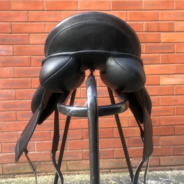 This saddle was developed with Carl Hester, and was designed to help Carl sit closer to some of his wider fitting horses. It offers freedom of movement through the back and shoulder yet with reduced bulk in a mono flap. It is also suited to riders who want to feel closer to the horse in this close contact design. Suited to horses with low to medium withers.