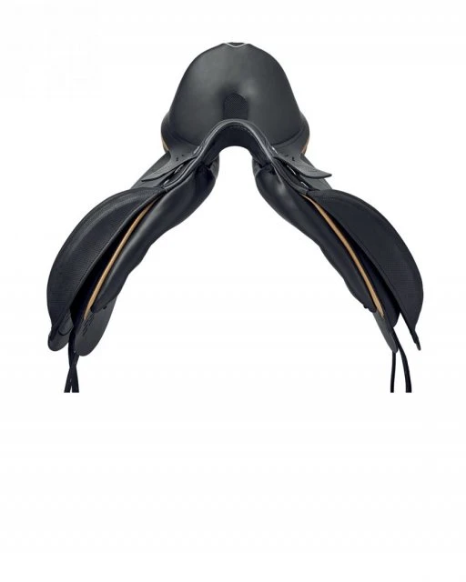 The ultra-light X-Breath Dressage saddle has a central cut out section of the seat which really sets this saddle appart from it’s rivals. This centrally positioned oval hole performs the following dual function: a ventilation function to ensure better air circulation, so keeping the horse and the rider cool, and a therapeutic function: the anatomically shaped aperture assists protection of the coccyx. Other cut out sections throughout the saddle also assist with weight and ventilation. X-Technology provides a dual elastic and shock absorbing membrane under the rider’s seat bones as well as a new honeycomb elastic stuffing in the panels eliminating the need for felt, reducing the panel’s thickness to give a close contact without impacting on comfort or performance of the horse. Finished in a superior calfskin for a luxurious but hard wearing feel.