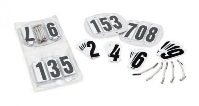This smart, wipe clean number holder set includes two holders with elastic fixings, 4 sets of numbers and a compact storage wallet. 90mm x 84mm