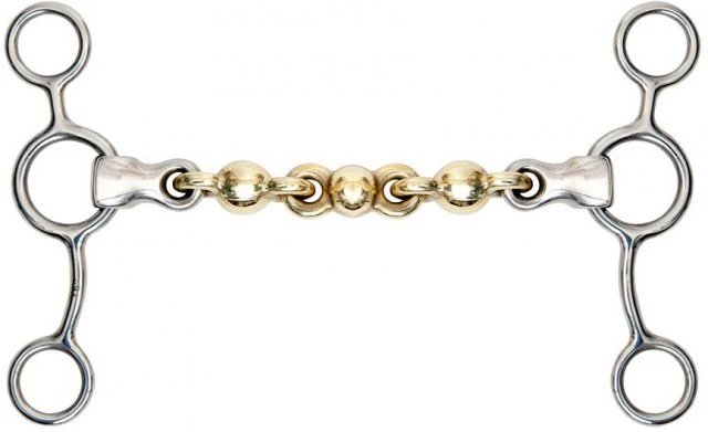The lifting effect at the front offers more control and precision making it good for jumping. It is also used generally for horses that tend to lean owing to its uplifting action. The cheeks reinforce the turning aids and will not pull through the mouth. The Tom Thumb Cheeks are allowed for Pony Club, Showjumping and Eventing. Brass alloy assists with salivation, along with a warmer feel in the horses mouth as well as being more palatable than stainless steel. Mouthpiece thickness: 10.5mm. Cheek height: 135mm.