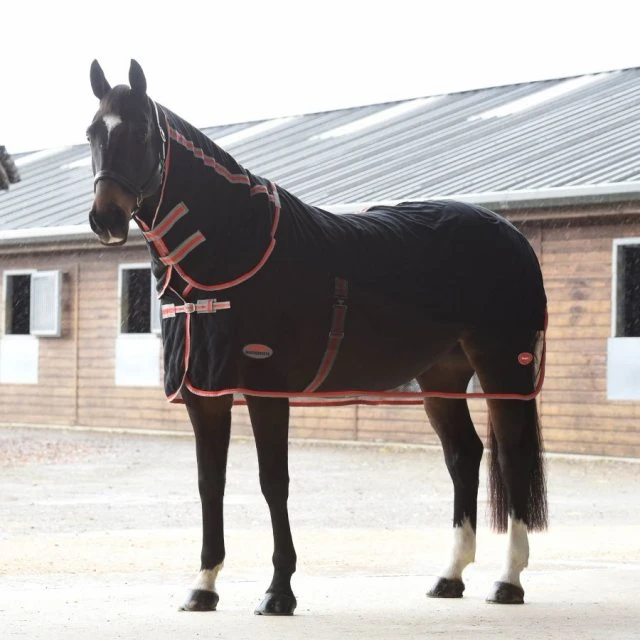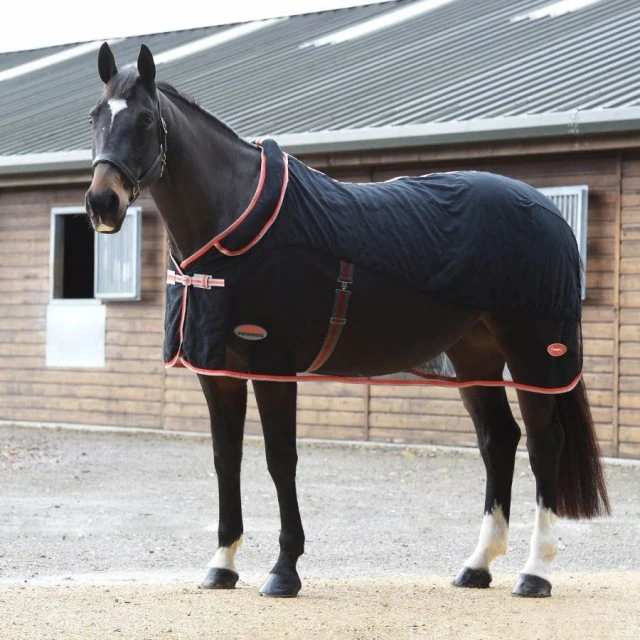The WeatherBeeta Therapy-Tec Wick Dri Cooler Combo Neck is an ideal choice pre and post exercise or whilst travelling, with ceramic fabric technology to reflect the horse?s own body heat over the shoulders, back, neck and quarters. Lightweight, breathable and highly wickable cooler with mesh covered CoolDry fleece upper and a mesh lower for airflow. Features includes a hideaway neck pocket with a touch tape closure to easily fold the neck portion away to use as a Standard Neck style, boa fleece wither relief panel, single adjustable buckle front closure, single hidden adjustable surcingle and tail cord.